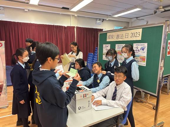 In light of the Constitution Day on 4 December commemorating the adoption of the Constitution of our country, a series of activities were held during the week with the help of our Basic Law Student Ambassadors. A book exhibition was organized and boards were displayed in our school hall. Together with a Q&A session, the activities were a good opportunity for students to learn about this important day as well as the Basic Law and enhance their sense of national identity.